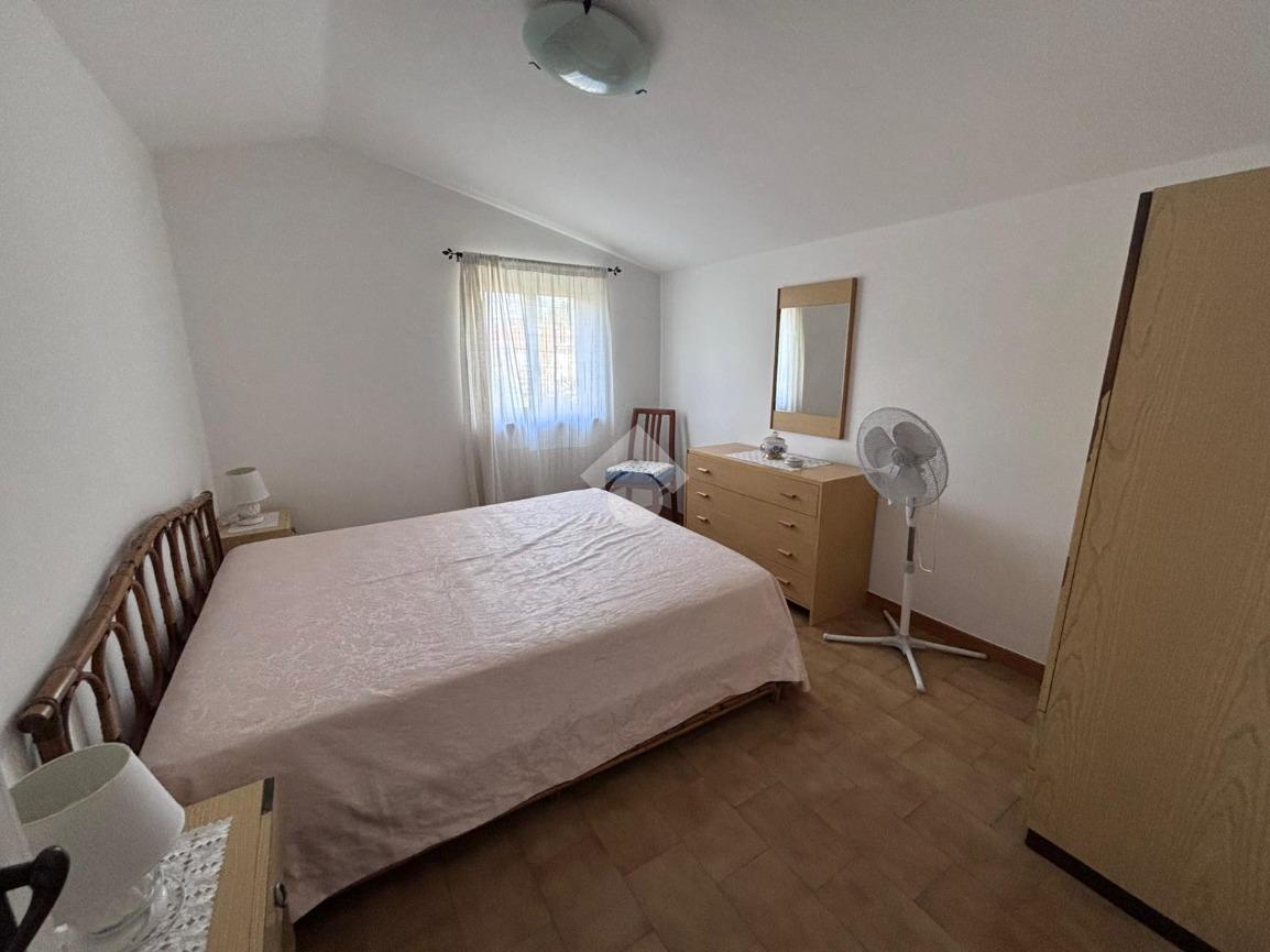 Dal soggiorno, una scala interna conduce al piano superiore, dove si sviluppano altre due camere da letto, ben arieggiate e con affacci aperti.